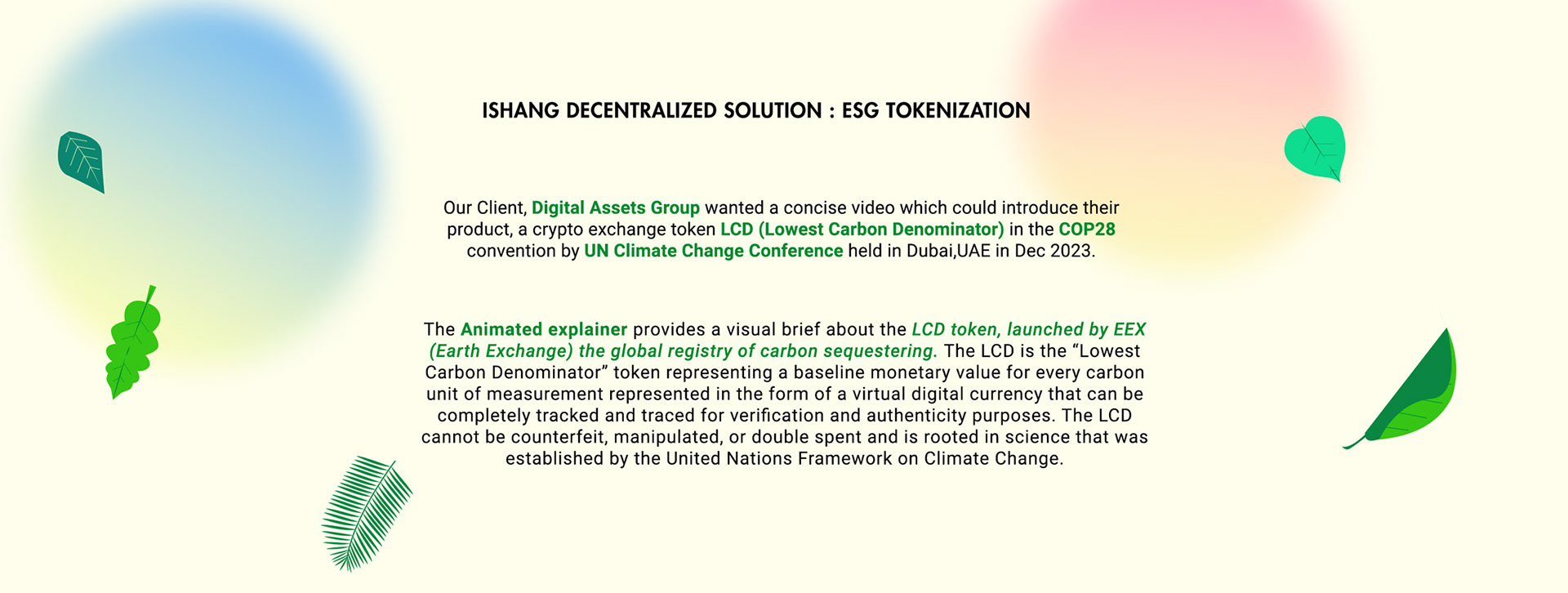 Animation explainer introducing digital currency LCD token and Earth Exchange to be launched in COP28 organised by UNCCC.